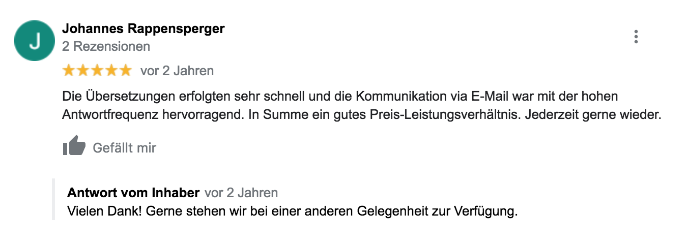 Wir blicken stolz auf mehr als 15 Jahre Erfahrung mit beglaubigten Übersetzungen zurück – eine beeindruckende Zeitspanne, in der wir unzählige Dokumente präzise vom Englischen ins Deutsche